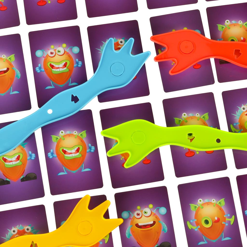 „Złap potwory” to dynamiczna i pełna frajdy rozgrywka, która dostarcza mnóstwo śmiechu, jednocześnie rozwijając kluczowe umiejętności takie jak szybkość reakcji, spostrzegawczość i zręczność. Gra polega na szybkim działaniu i precyzyjnym łapaniu kart, co rozwija u dziecka zręczność i poprawia jego koordynację ruchową. Dziecko musi uważnie obserwować karty i porównywać je z obrazkiem na aparacie, co rozwija umiejętność koncentracji oraz pamięć wzrokową. To doskonała okazja do wspólnego spędzania czasu, który sprzyja zacieśnianiu relacji rodzinnych. Gra toczy się błyskawicznie, a każde nowe zdjęcie potwora przynosi emocje i nowe wyzwania! Gracze muszą działać pod presją czasu, co pomaga w nauce szybkiego podejmowania decyzji i efektywnego zapamiętywania detali. Idealna dla dzieci, które uwielbiają interaktywne zabawy oraz dla rodzin szukających świetnego sposobu na wspólne spędzenie czasu!