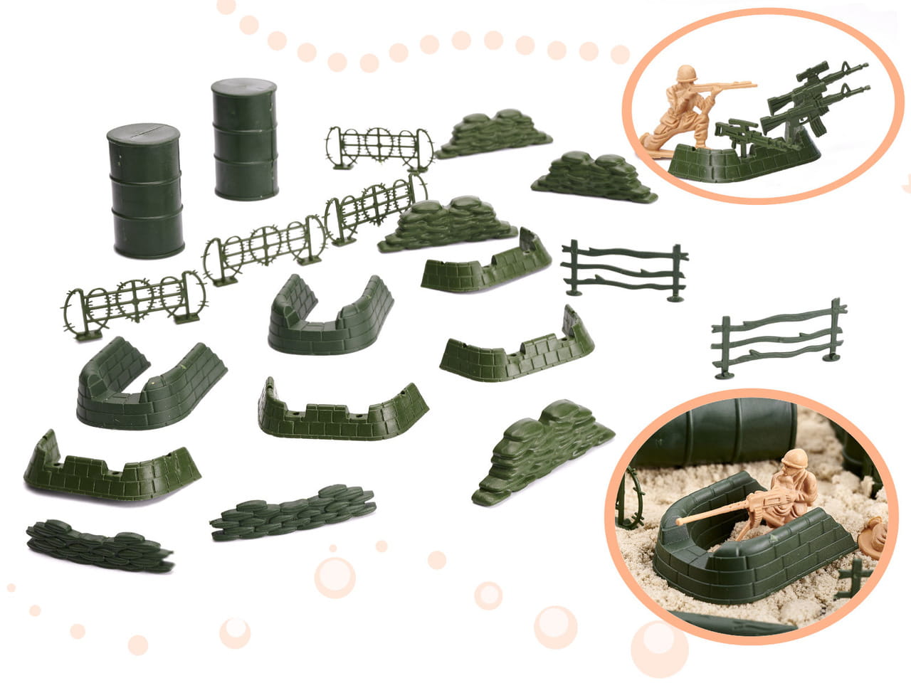 ZESTAW FIGUREK DO BAZY WOJSKOWEJ 114 ELEMENTÓW to idealna propozycja dla małych miłośników wojska. Stwórz własną bazę wojskową i zarządzaj żołnierzami, co pozwoli na rozwijanie kreatywności i wyobraźni. Dzięki temu zestawowi dzieci mogą organizować bitwy, ćwiczyć strategię oraz rozwijać zdolności manualne. To nie tylko zabawa, ale także sposób na naukę logicznego myślenia i orientacji przestrzennej. Możliwość budowy bazy według własnych upodobań rozwija umiejętność podejmowania decyzji. Zestaw żołnierzyków zapewni wiele godzin udanej zabawy, zarówno w pojedynkę, jak i w towarzystwie rówieśników czy rodziny. Idealny dla dzieci, które pragną stać się małymi strategami!