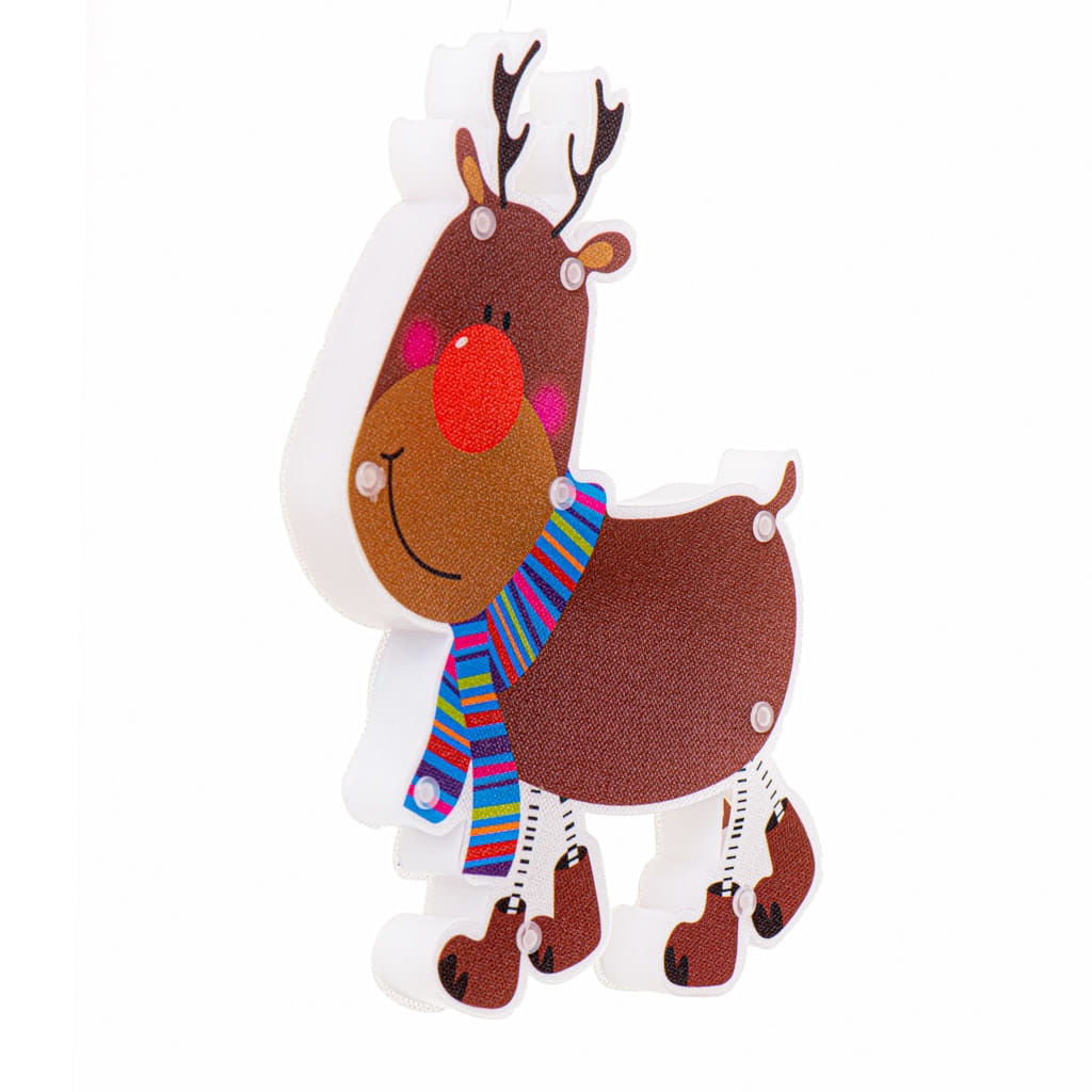 Uśmiechnięty renifer Rudolf to idealna dekoracja, która wprowadzi każdego w świąteczny nastrój! Jego przyjemne światełka rozświetlą każde wnętrze, tworząc wyjątkową atmosferę podczas zimowych wieczorów. Renifer doskonale komponuje się z innymi lampkami z serii, co pozwala na stworzenie magicznego świątecznego wystroju. Dzięki swojej dwustronnej budowie, lampka będzie efektownie wyglądać zarówno z wewnątrz, jak i na zewnątrz okna, przyciągając wzrok przechodniów. To nie tylko ozdoba, ale także praktyczne rozwiązanie – może pełnić rolę lampki nocnej dla dzieci, wprowadzając je w spokojny sen. Bez względu na to, gdzie ją umieścisz, renifer z pewnością doda blasku każdemu pomieszczeniu!